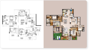 - Turn blueprints to colourful Floorplans